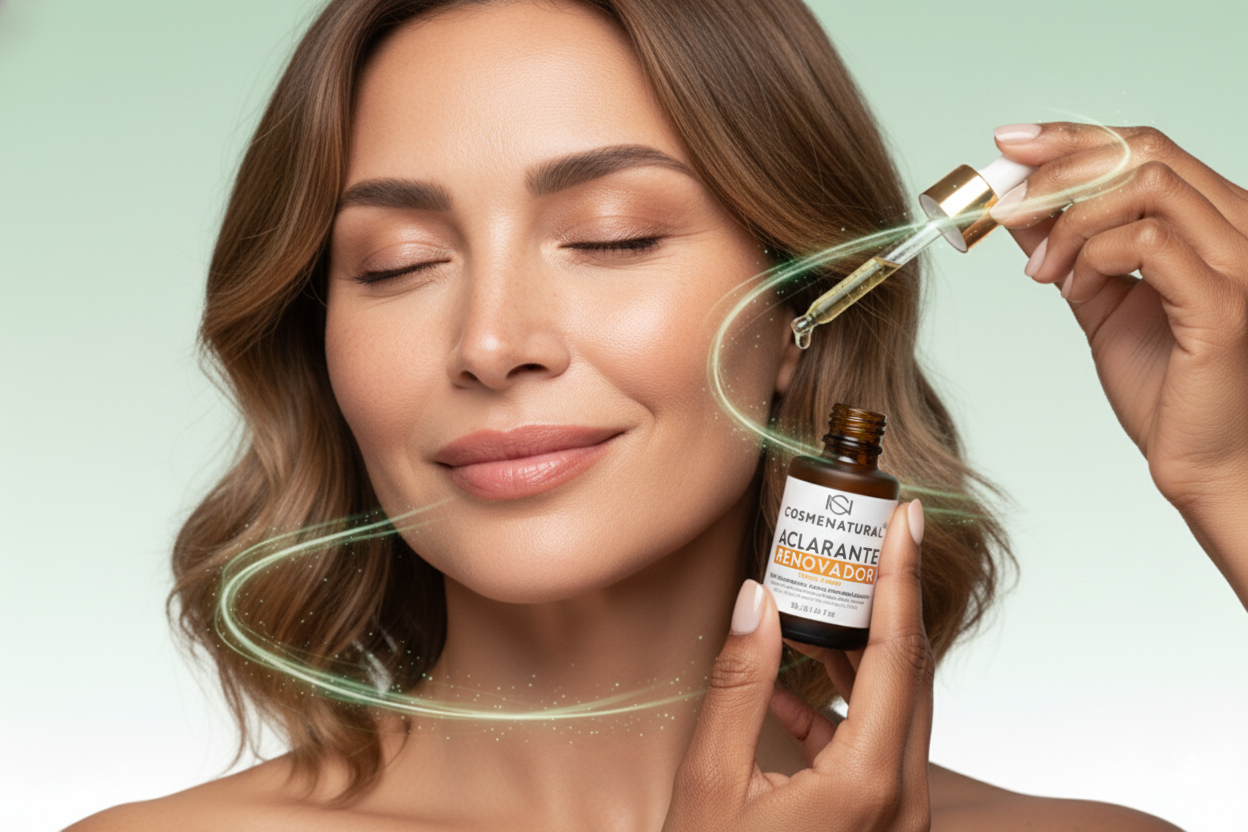 Tónico Renovador Aclarante: Aplica 4 gotas en algodón y pásalo suavemente.